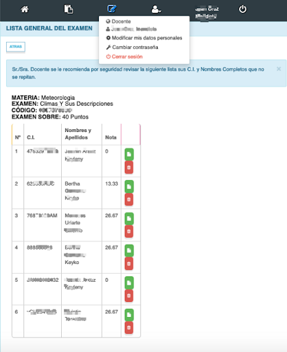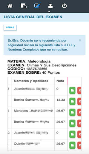 🔖Al finalizar el examen el Docente puede ver una lista general de los estudiantes que resolvieron.