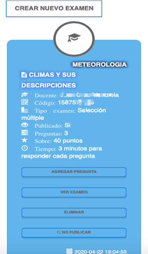 🔖 El Docente es el único que puede publicar o no su examen para sus estudiantes, así de este modo no permite más accesos a su examen.