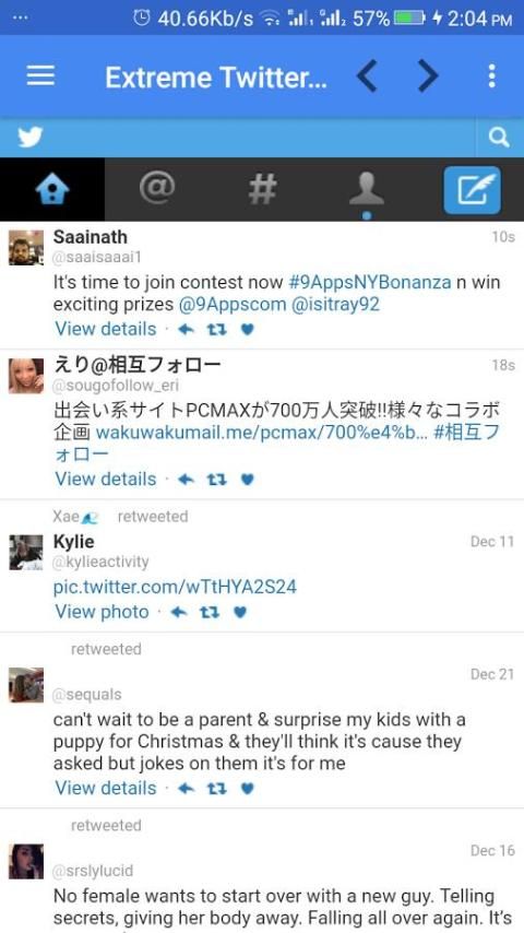 Все высококачественные мобильные приложения доступны для бесплатного скачивания. 20,000+ пользователи скачали последнюю версию Extreme Twitter Lite в 9Apps бесплатно каждую неделю! Самые известные приложения ждут вас. Это горячее приложение было выпущено в 2017-01-11. Если вы хотите получить его, просто скачиваете его без сомнения и проводите весёлое время с ним.