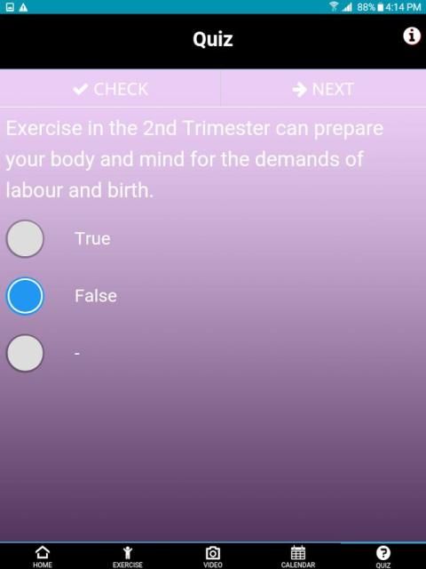 @FitMom учит пользователям простые, безопасные и адекватные упражнения, чтобы сделать во 2-м триместре беременности, используя интерактивные инструменты, такие как изображения, видео и календарь с функциональностью упражнений регистра, чтобы отслеживать частоту упражнений и вида деятельности. Пользователи могут затем экспортировать этот файл, чтобы показать его врачу. Кроме того, пользователи могут проверить свои знания упражнений во 2-м триместре беременности в забавном пути через маленький и весело викторины.
