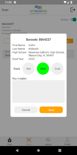 - Быстрый рейтинг рейтинга - Один сенсорный рейтинг каждого студента, поэтому наиболее важные перспективы отмечены (варианты ранга - горячие, мед и холодные). Это также должно быть сделано до того, как следующий студент будет отсканирован