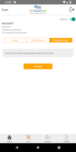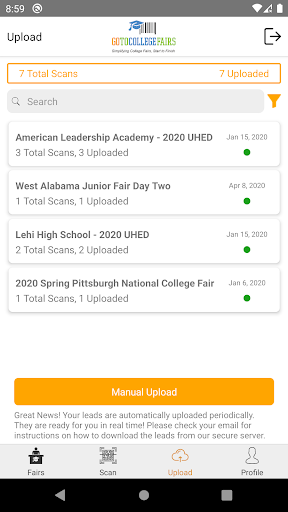 Mobile App Mobile предлагает вам удобство наличия сканера Gotocollegefairs.com (GTCF) на вашем телефоне! При увеличении функциональных и уникальных функций приложение для мобильного сканирования является идеальным компаньоном для представителя колледжа во время занятого сезона рекрутинга.