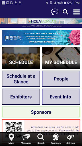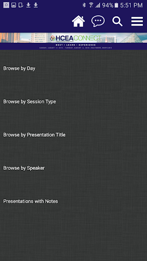 The HCEAConnect mobile application allows you to view abstracts, presentations, speakers, and exhibitors from HCEA events. Users can take notes adjacent available presentation slides and draw directly on slides inside the app. Note-taking is also available in the exhibitor module.