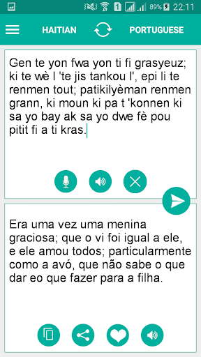 Это бесплатное приложение может перевести слова и текст от гаитянского креольского на португальцев, а от португальцев до гаитянской креольской. Лучшее приложение для простого и быстрого перевода, которое можно использовать как словарь. Если вы студент, турист или путешественник, это поможет вам выучить гаитянскую креольскую или португальский язык!