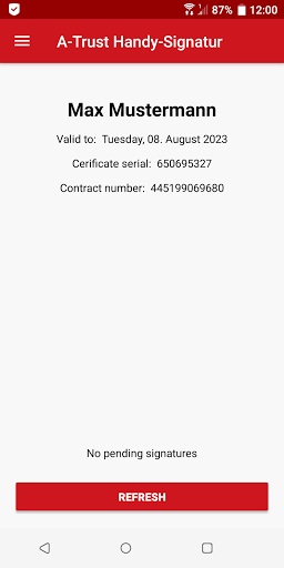 - Отныне вы можете увидеть при открытии приложения, как долго собственная подпись мобильной связи все еще действует и При необходимости, если необходимо, продлить вовремя (бесплатное удлинение расширения A-Trust: https://www.handy-signatur.at/activation/selbst/handy/verlagung.aspx)