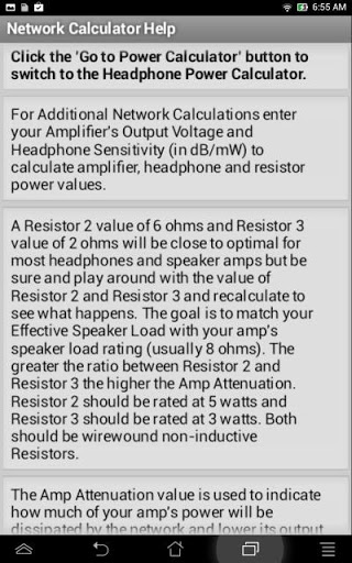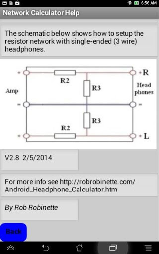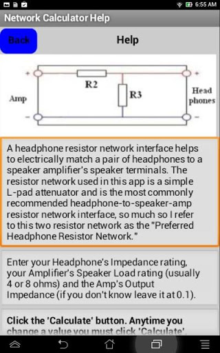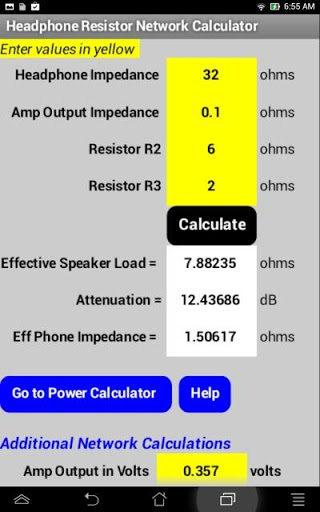 Этот калькулятор имеет две основные функции: страница «Резистор для наушников Network Calculator» поможет вам определить оптимальные значения резистора для наушников к интерфейсу динамика, который будет в электронном виде сопоставить ваши наушники к усилителю динамика с помощью резисторной сети. Страница Calculator Power Calculator для наушников будет рассчитывать мощность наушников, тока и напряжения. Сеть резистора, используемая в этом приложении, является простым двумя резистором L-Pad Attunuator и является наиболее часто рекомендуемым интерфейсом резистора для наушников к динамикам-ампер.