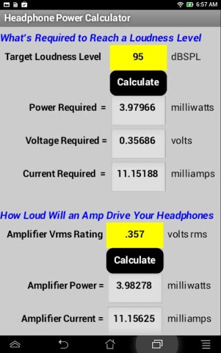 1. Введите значения в желтом, включая рейтинг импеданса ваших наушников и рейтинг чувствительности в DB / MW (Decibel на Milliwatt). Если ваш производитель наушников перечисляет рейтинг чувствительности в DB / V (Decibel на вольт), выберите флажок БД / V. Для расчета мощности, необходимой для достижения значения громкости, введите желаемую громкость в БД. Для расчета того, насколько громкий усилитель будет управлять наушниками, введите рейтинг VRMS усилителя.