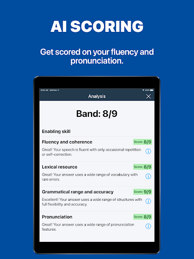• получить обратную связь мгновенно и, по оценкам, оценка для IELTS Speaking практики.
