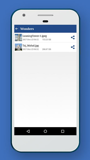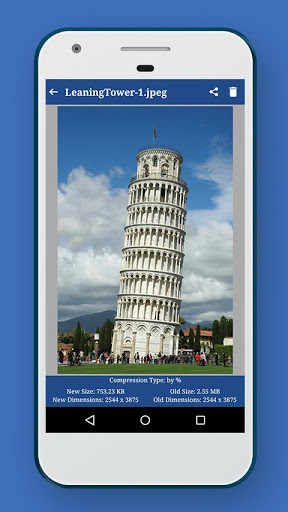 7. Share or delete compressed image(s) by long pressing the image in the list.