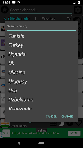 - Add Radio Channels from all over the world. From US, UK, China, France, Russia, ... You just need to go to setting and switch to the country you want to listen to. Enjoy it!