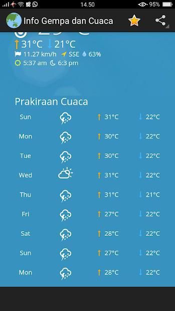 Current Earthquake Info and CUaca Application Info is an app that will help you monitor where the earthquake occurred and provide you with the latest weather information and weather forecasts.