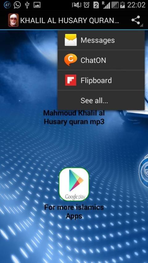 Слушайте ХАЛИЛ Л. HUSARY Коран MP3 whic является красивейшее чтение шейха husary. наслаждаться и делиться им с друзьями, и если певце нужно больше исламистов приложений, которые вы можете проверить их ниже. и если у вас есть какие-либо предложения или замечания, не стесняйтесь. дать ему пять звезд