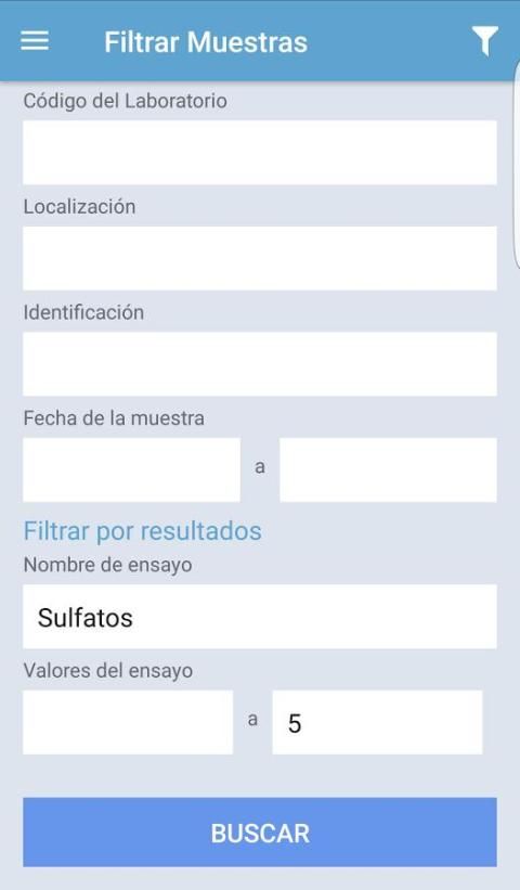 अपने मोबाइल डिवाइस से परामर्श वास्तविक समय में और आसानी से अपने परिणाम का चयन करने के लिए हमारे विशेष फिल्टर का उपयोग कर अपने नमूने और परीक्षण की स्थिति।