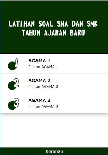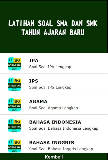 Вопросы, представленные в форме таких предметов, как религия, Индонезийская, английский , Математика, IPA, IPS, PKN, физическое и спортивное образование и другие.