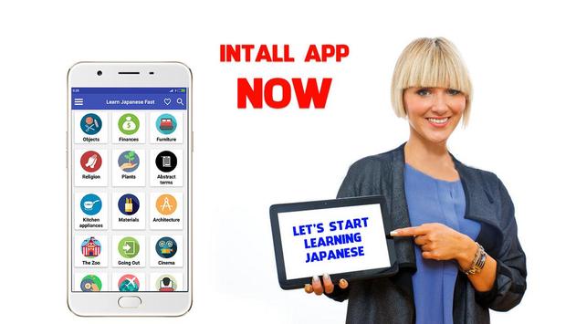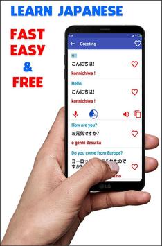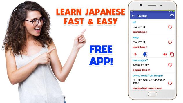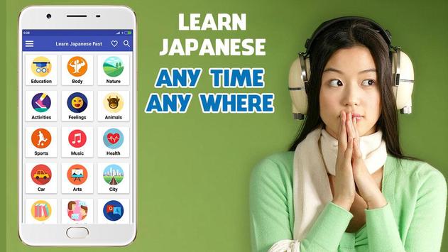 Learn Japanese Fast, Easy And Free/strong> is an application to learn Japanese through words, phrases and sentences with more than 10000 phrases and sentences and 90 categories that are classified in order for common themes in Japanese will help you improve your Japanese,