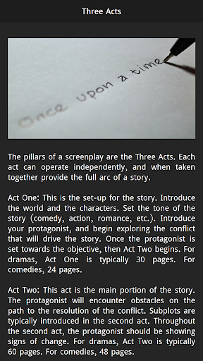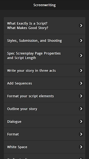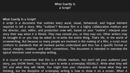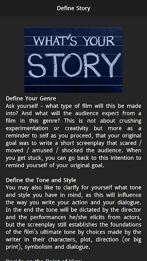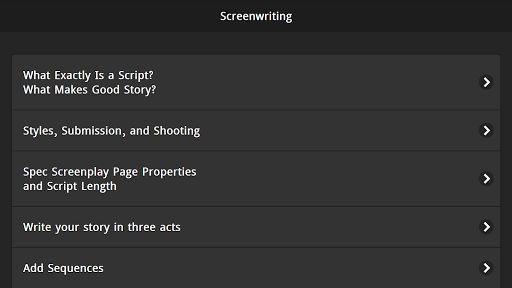 This app has a user friendly interface. And chapters and lessons are nicely organized with example. This application is free for users and easy to use. So hope this Screenwriting aka Film Screenplay app will help you to start your screenplay.
