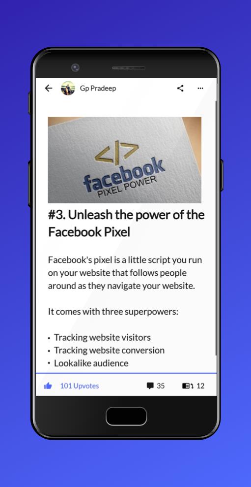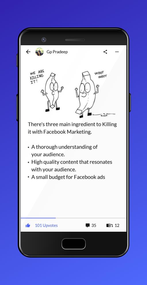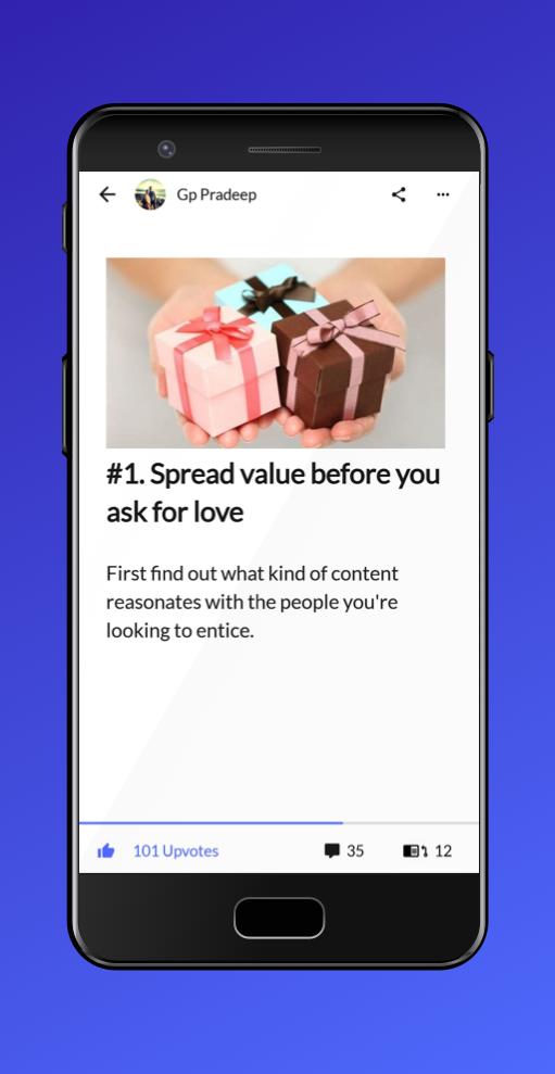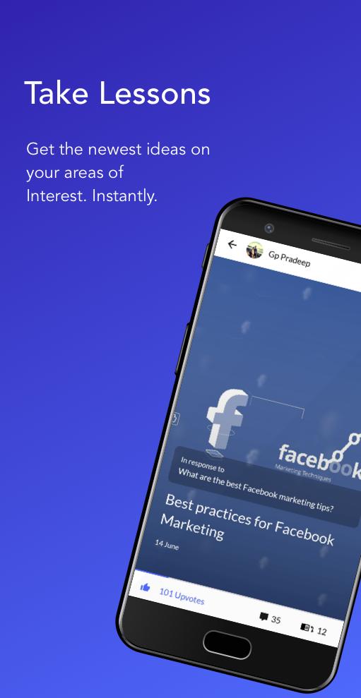 The app hosts a community where aspiring people get to interact with subject matter experts in various streams such as Business, Technology, Marketing, Startups, Productivity, and Finance.