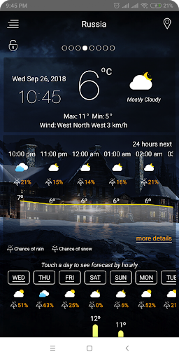 Приложение дает вам очень простой пользовательский интерфейс, легко увидеть всю информацию о погоде одним касанием.