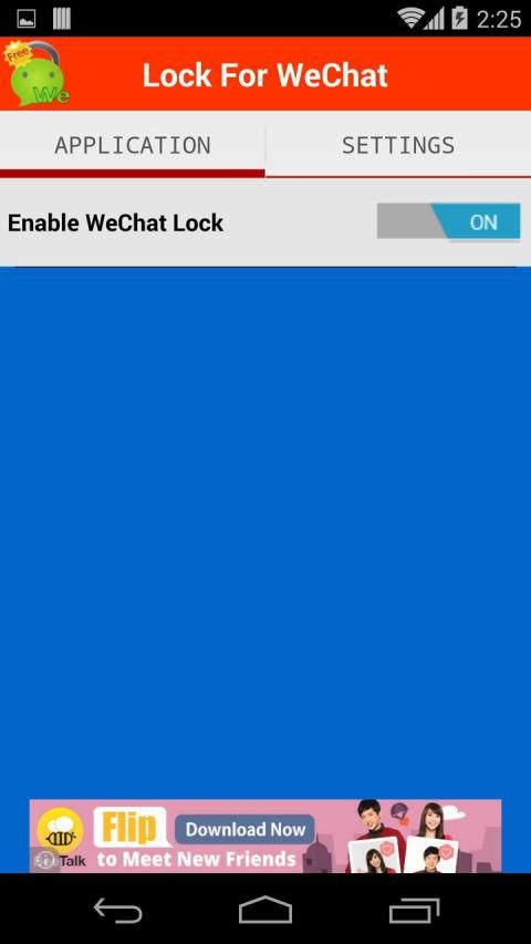 Lock for WeChat for your Android. Password protected access for your WeChat application. With Lock WeChat App, you can lock your WeChat app with your own password and prevent your friends, family members, coworkers or any other people from getting into the app in your Android without your permission. Features: * Quickly Enable/Disable the lock * Neat & simple User Interface * Low memory consumption. * Password Recovery With Question/Answer * Number Lock * Pattern Lock * Re lock Policy Protect your WeChat from unwanted access. WeChat Lock allows you to lock your WeChat with a unique password so that no one can access WeChat on your BlackBerry® without your permission. WeChat lock is very optimized application, in terms of memory and battery consumption. Neat and clean user interface, with beautiful graphics. Let's face it, when it comes to Android, whether you like the official WeChat application or not it has one major flaw: no notifications! And this is even more true when you don't use any app for WeChat at all but just the browser, and yet want to keep updated. I frankly hate this: why would you have to check for updates yourself when you could get automatically notified whenever a notification from your WeChat account arrives, just as iPhone users do? I decided to solve this issue for my own convenience, and so this is where this app chimes in: a lightweight and fast application to get notifications from WeChat, what you decide, at the interval you decide and reported as you decide. Nothing else, just as plain and simple as effective! Choose between general notifications, private messages, friend requests, events, birthdays, pokes, online friends and lost friendships and decide how to view the notifications: Features: - Easy configuration. - Password Protection for WeChat. - Password Protection for WeChat Messenger. - Easy mode for App Status – Switch on & off. - Less Battery and Memory consumption. - Fully Touch Supported. - Easy Password Recovery by Email, SMS or Security Question.