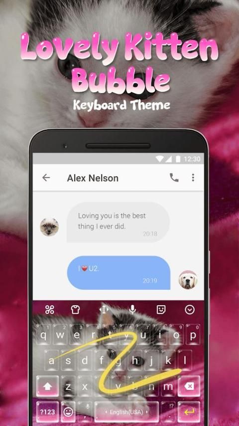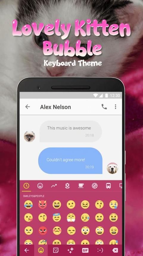 -Lovely Котик Bubble Keyboard Тема для Snapchat работает только с Facemoji клавиатура + ГИФС, установленных на вашем телефоне. Если вы не имеете его, вы будете автоматически привело к Google Play скачать ссылку, а затем загрузить и выберите Facemoji Keyboard + ГИФС как клавиатуры по умолчанию.