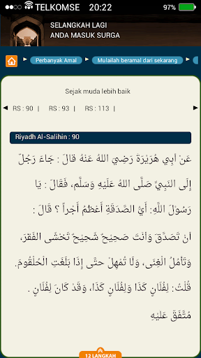 Berangkat dari kelebihan-kelebihan di atas, penulis ingin mengambil berkah atau manfaat dan sisi-sisi positifnya. Penulis mengambil hadis-hadisnya dan menyusunnya dalam tema berbeda. Ruh dan Filosofi dasarnya tetap penulis ambil dari Riyad al-Salihin, dari sisi judul, penulis memilih “ Selangkah Lagi Anda Masuk Surga”.