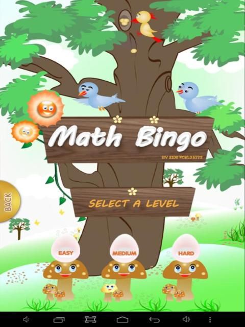 Выберите из сложение, вычитание, умножение или разделения Бинго, затем выберите уровень сложности.
