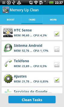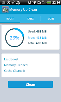MemoryUp Clean memory serves, first, to see graphically how it uses your memory available, and on the other hand, allows you to free up memory for the app that you need at that time make use of it.