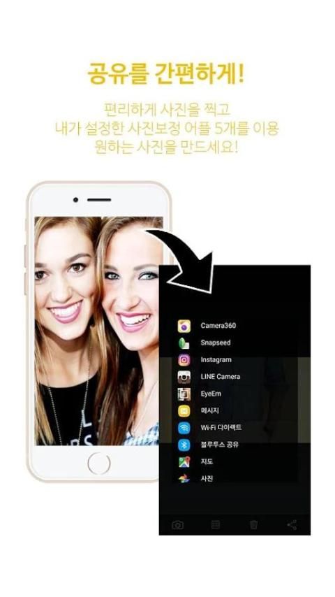 Теперь создайте изображение, которое вы хотите использовать ваше любимое место для обмена Press Photo Fix, чтобы установить порядок пяти приложений перейти непосредственно к экрану редактирования к Instagram, камера 360, оснастке семя, красоту, а также камеру, конфеты и т.д. В параметрах общего доступа