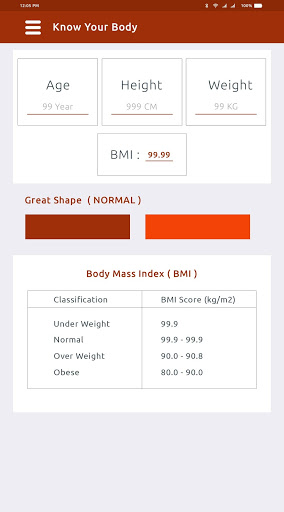 NG BMI Calculator - очень простой способ сообщить вам о своем здоровье.Вам просто нужно поставить возраст, рост и ваш вес, и это замечательное приложение даст вам ценность вашего текущего ИМТ.