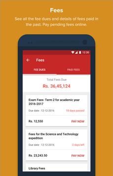 Fees : No more long queues. Now you can pay your school fees instantly on your mobile. All the upcoming fee dues will be listed in the events and you will be reminded with push notifications when the due date is getting closer.