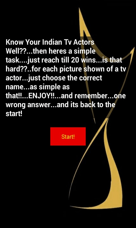 Know Your Indian Tv Actors Well??...then here's a simple task....just reach 20 wins...is that hard??..for each picture shown of a tv actor...just choose the correct name...as simple as that!!...ENJOY!!...and remember...one wrong answer...and its all the way back to the start!
