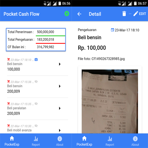 это приложение использует камера, чтобы сохранить покупки поступления и простые графики.