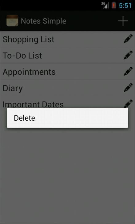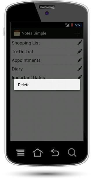 Для создания новой заметки просто нажмите на значок + в верхнем правом углу. Для редактирования записку, в которой уже было создано просто нажмите на значок карандаша справа от ноты. Чтобы вернуться обратно в список заметок просто нажмите ваши телефоны кнопку Назад или нажмите на значок приложения и названия в верхнем левом углу панели действий. Чтобы удалить заметку, просто нужно долго-пресс на записке вы хотите удалить, и выберите опцию Удалить из меню, которое всплывает.