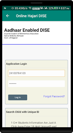 Online Hajari (SSA Aadhaar Enabled DISE) Application is Very Useful For Teacher, Principal (Acharya) and Students To Update Daily Attendance of Students.