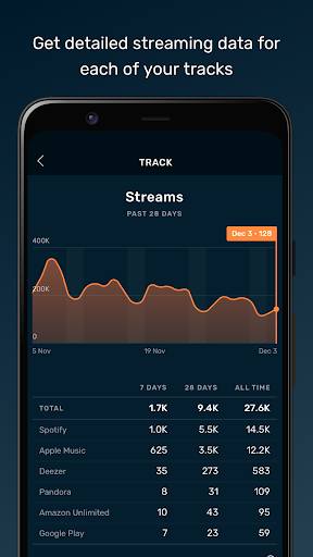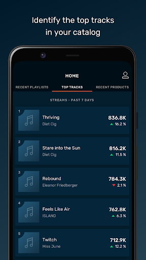 -Див глубже, чтобы увидеть аналитику треков, как потоки всех времен, тенденции, размещение плейлистов и многое другое.