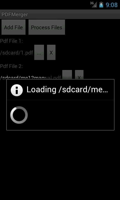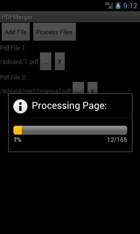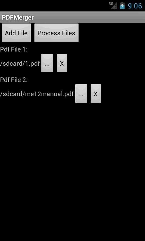 PDFMerger allows you to combine as many PDF documents in to one! Simply choose the files from your smartphones SD card by using the embedded file browser and create a single file! The file is output to the sdcard folder by the name "merged_{increment}"!