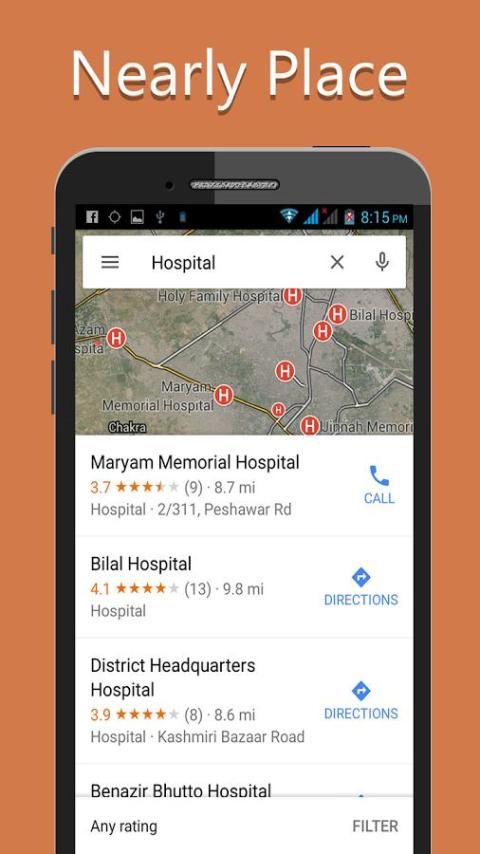Вы можете найти близлежащие места и маршруты по одним щелчком мыши. этот маршрут искателя приложение