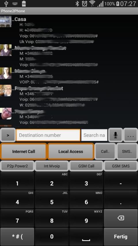 Вы можете начать вызов путем выбора контакта в обычной адресной книги или с помощью опции для отправки SMS и выберите Phone2Phone автоматический вызов.