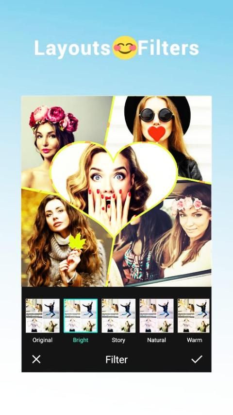 - Объединяет клипы в одну историю со множеством удивительных и необычных коллажных шаблонов