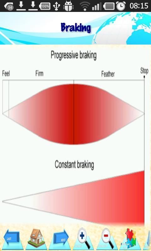 Это приложение научит вас, как использовать тормоза, сцепление, осознание скорость, как остановить в дорожном движении, движении накатом и вращение колеса и многое другое.