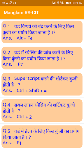 This app is useful for RSCIT, MSCIT, OSCIT, HSCIT, BCC, CCC, O Level, SSC Exam, Bank Exam and other competitive examination.