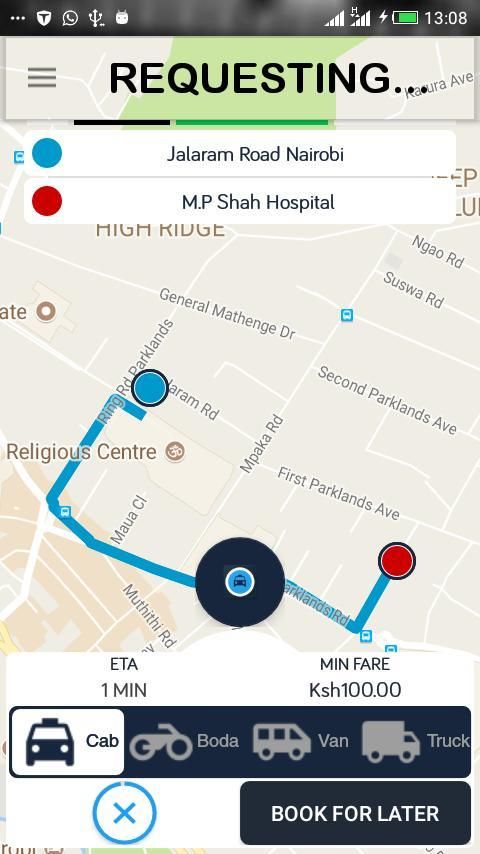 1 Введите приложение и запросить такси, приложение будет автоматически определить свое местоположение с помощью технологии GPS.