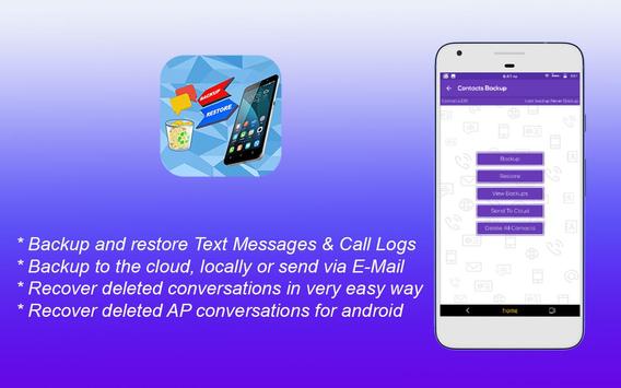 Recover Deleted Text SMS Messages Backup & Restore is a Best Android app that backs up and restores your phone's call logs and text messages .