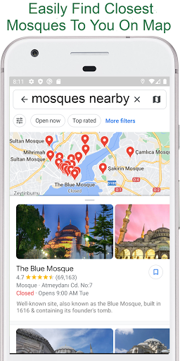 . Ближайшие мечети: находите близлежащие мечети, куда бы вы ни пошли