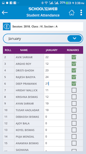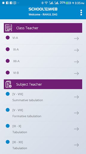 SchoolonWeb Android-приложение было разработано, имея в виду трудности, с которыми сталкиваются учителя нашей правительственной версии подписчиков в управлении отметками и другими академическими рекордами студентов.Теперь Tabulation and Marketheet Generation для государственных школ будет проще с этим приложением, поскольку учителя смогут ввести или редактировать оценки в соответствии с их удобством, используя это приложение.Он позволяет персоналу легко вводить следы различных предметов, ввести ежедневные или ежемесячные посещаемость учащихся, изменить профиль студентов, обновлять фотографию студентов, просмотр карточки отчета и заслуги.