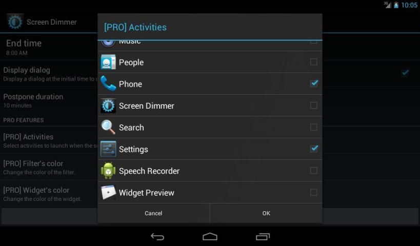 - [PRO] Выберите приложения для запуска, когда начинается затемнения экрана.
