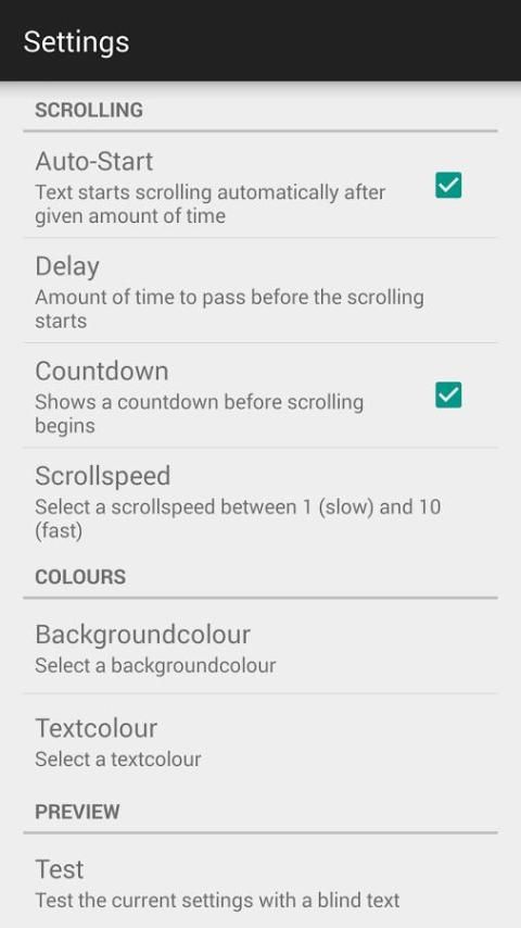 Настройка телесуфлера для ваших нужд: Вы можете изменить скорость прокрутки, шрифт, цвета и множество полезных функций, таких как автоматический запуск и зеркального отображения или блокировки ориентации устройства.