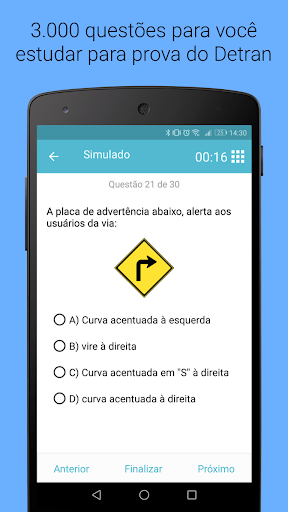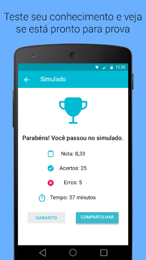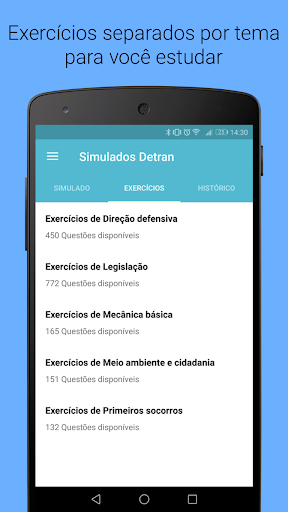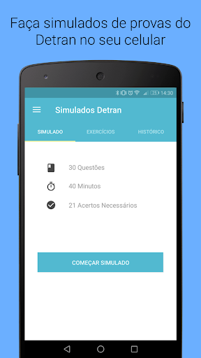 с приложением Simulated Detran, вы можете сделать симуляцию теоретических доказательств. Каждый фиктив имеет 30 вопросов и должен быть выполнен в течение 40 минут, одинаковое доказательство DMV CNH.
