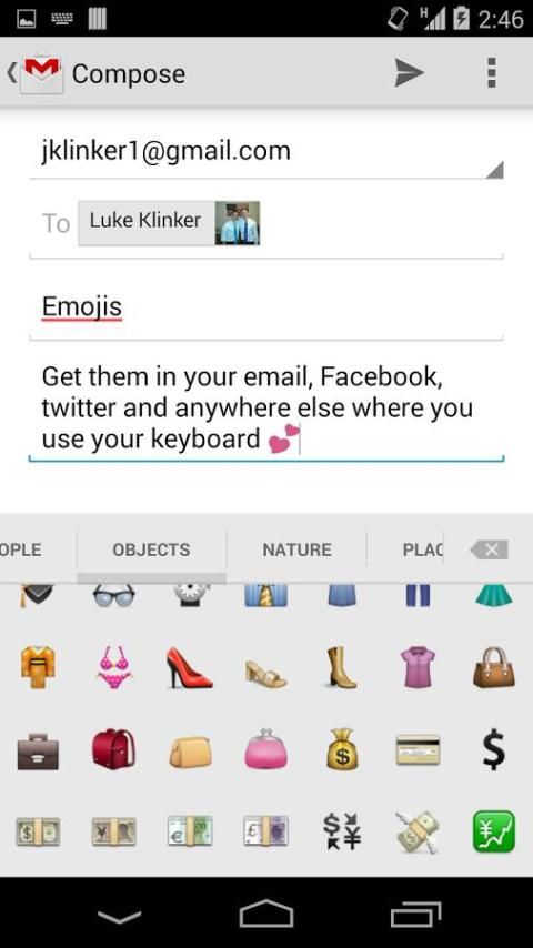 - В Android 2.3 и ниже, выберите "Раздвижные Emoji Keyboard" в диалоговом окне, которое появляется после длительного нажатия на любом текстовом поле.