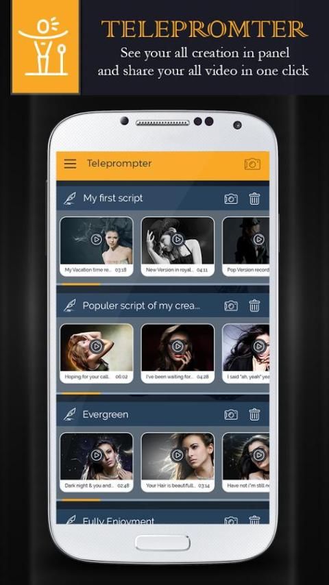 Телесуфлер Video Creator является профессиональным автором видео скрипт показывая Телесуфлер видеомагнитофон приложение на якорь, как профи и веб-видео-мейкера, чтобы смешать ваши презентации с фотографиями, видео-кадров и чириканье. Прочитайте сценарий из суфлера и запись видеоклипа с фронтальной камеры одновременно.